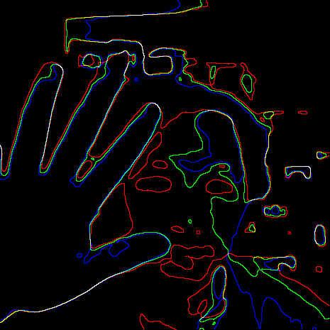 * 「C言語で学ぶ実践画像処理」 オーム社 井上誠喜・他 P47 「4.7 ラプラシアンとゼロ交差により輪郭線を求める」