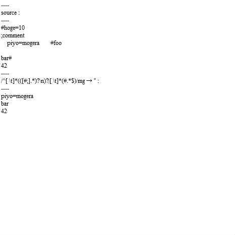 trace("/^[ \\t]*(([#;].*)?\\n)?|[ \\t]*(#.*$)/mg → '' :");