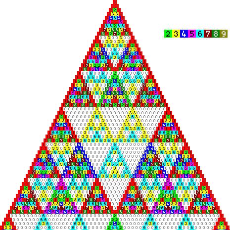 //パスカルの三角形の各マスの数を定数mで割った余りを表示した三角形
