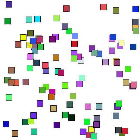 * 100個の正方形をランダムに配置する
