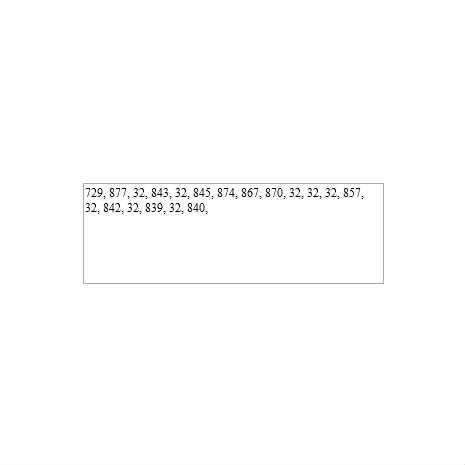 tf.appendText(String(new String(str[i]).charCodeAt() + ", "));