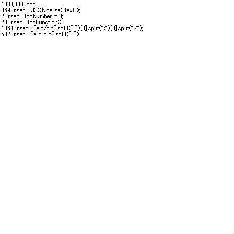 outputText += "\n" + time.toString() + ' msec : "a b c d".split(" ")';