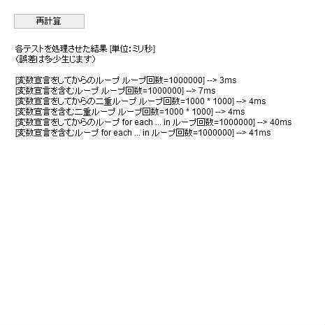* 変数宣言をしてからのループと変数宣言を含むループの処理速度比較