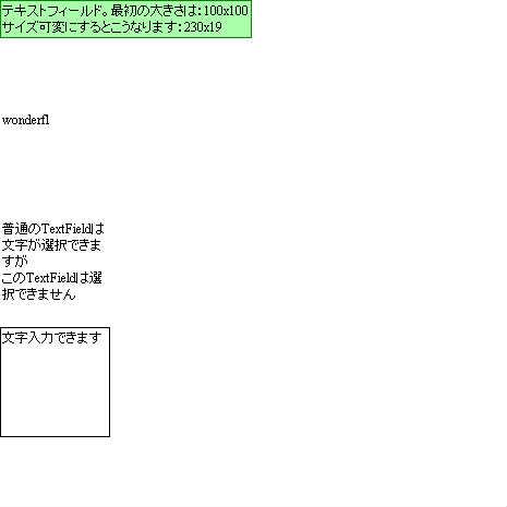tf.appendText("\nサイズ可変にするとこうなります:" + tf.width + "x" + tf.height);