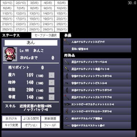 「QB狩りオンライン Solo」の新要素追加実験用forkです。 本家等他のバージョンへのセーブデータ持ち出しは出来ません。持ち込みは今のところ可能。 ・新接頭語 11種 ・新武器タイプ「お守り」 5種 新要素を手軽に体験したい方は体験版http://wonderfl.net/c/tauSをどうぞ。 ソースコードはこちら。 http://www1.axfc.net/uploader/so/2663333.txt