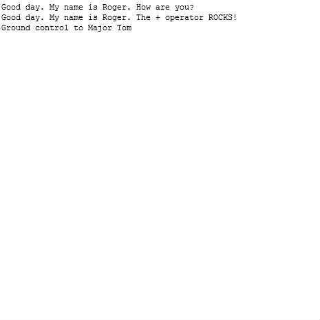 trace(s2); //Good day. My name is Roger. The + operator ROCKS!