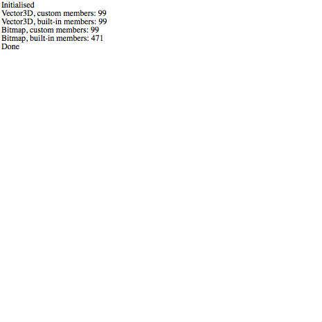 tf.appendText("\nBitmap, built-in members: " + String(getTimer() - iTime));