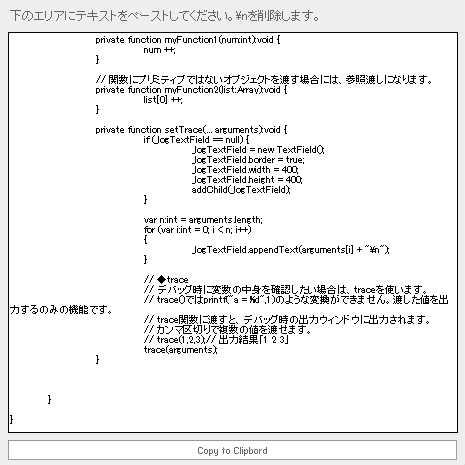 title.text = "下のエリアにテキストをペーストしてください。\\nを削除します。";