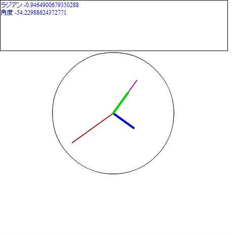 "ラジアン " + rad + "\n角度 " + (rad * 180/Math.PI) +
