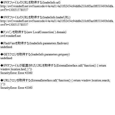 text += '◆SWFファイルが配置されたURLを取得する(ExternalInterface.call("function() { return window.location.href; }"))\n';