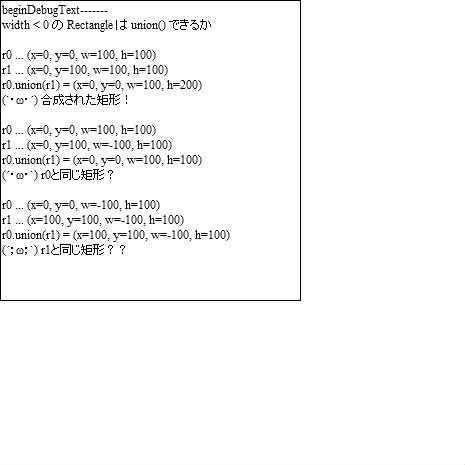 addDebLine("width < 0 の Rectangle は union() できるか\n");