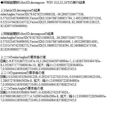 var txt:String="◆同機能関数Mtrx3D.decompose "+Capabilities.version+"での実行結果\n\n";