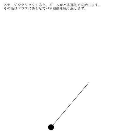 tex.text = 'ステージをクリックすると、ボールがバネ運動を開始します。\nその後はマウスにあわせてバネ運動を繰り返します。';
