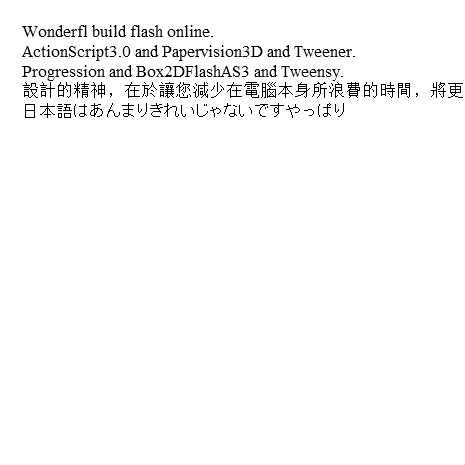 var rand3:RandomText=new RandomText("Progression and Box2DFlashAS3 and Tweensy.");