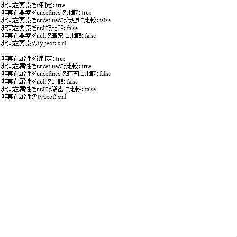 textField.appendText('非実在要素をundefinedで厳密に比較:' + (xml.elem === undefined ? 'true' : 'false') + '\n');