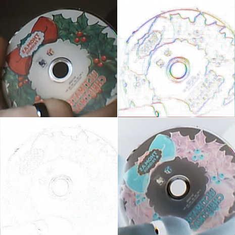 includes j2e's EdgeTransform Function for color-coded edges with orientation data japanese2english@gmail.com カメラ画像を取得してRGBに分解します。 画面をクリックすると分割した画像を1点に重ねます。 背景が黒、ブレンドモードがADDなら元画像と同じになるはずです。 ブレンドモードをいじったりしてみてください。