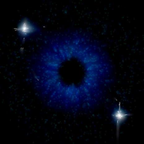 Stuck with one black hole but added two stars. Re used the old on mouse down function from xoul's version. The code is kinda dirty atm, I might come back and clean it up. Most likely I wont. One star fallows your the mouse, the other mirrors it.