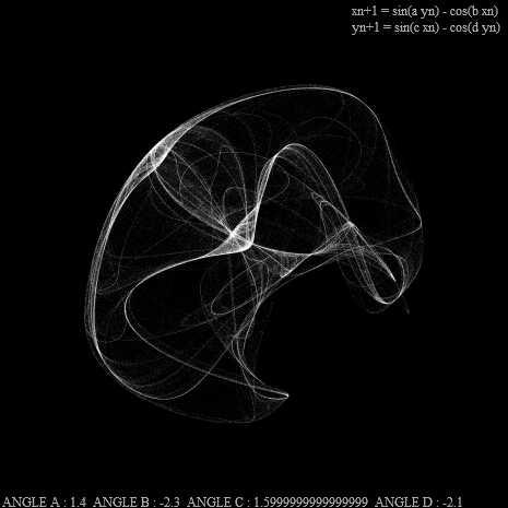 var $NextY:Number = Math.sin($AngleC * $PeterDeJongAttractor.$x) - Math.cos($AngleD * $PeterDeJongAttractor.$y);