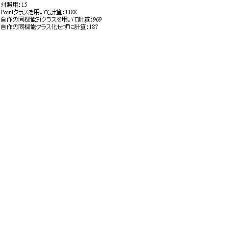 text += "Pointクラスを用いて計算:" + pointTest() + "\n";