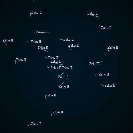 * 敵機の位置を示す点と敵/味方機種名をあらわす文字