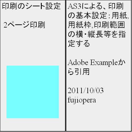 createSheet(sheet2, "AS3による、印刷の基本設定:用紙,用紙枠,印刷範囲の横・縦長等を指定する\n\nAdobe Exampleから引用\n\n2011/10/03 fujiopera", null);