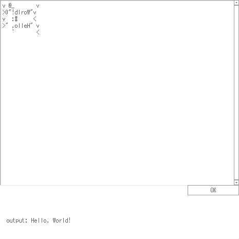 outputLabel.text = "output: " + new Befunge(map).execute();