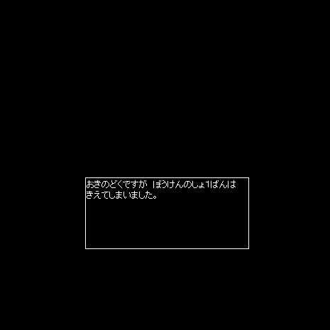 mw.setMessage("おきのどくですが ぼうけんのしょ1ばんは きえてしまいました。");