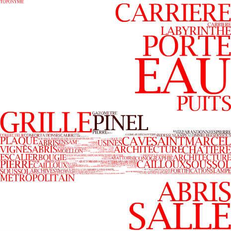 words = 'Abattoirs Abandonnees Abris Architecture Archives Avenue Banquier Bastion Bobillot Bougie Bunker Calcaire Cailloux Carriere Carpentier Cave Chatiere Collecteur Confortations Consolidations Defense Eau Dessous Dessus ENSAM Egouts Escalier Extraction Fortifications Galerie Gazometre Graffiti Grille Iconographie IGC Immeubles Italie Ivry Labyrinthe Lampe Metropolitain Moellon Mur Nationale Niveaux Parc Photographies Pierre Pilier Pinel Plaque Porte Promenade PTT Puits Regard Salpetriere Salle Saint-Marcel SousSol Souterrains Taille Toponymie Tags Trou Usines Vignes XIII'.split(' ');
