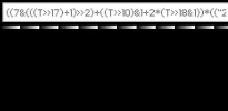 case 3: tt = t * (t >> 11 & t >> 9 & 123 & t >> 3); break;