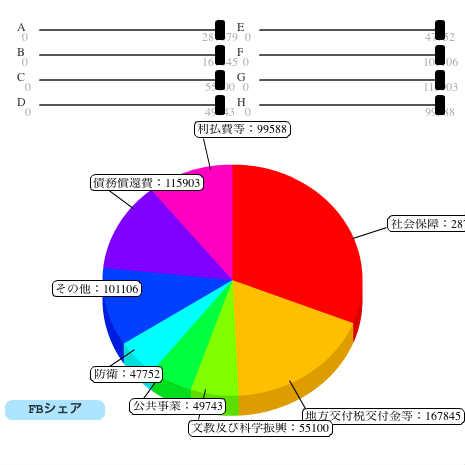//パイチャート編集データを「私の平成23年度の予算削減案」といった感じで、FacebookにGETクエリ付きURLとして投稿(シェア)します