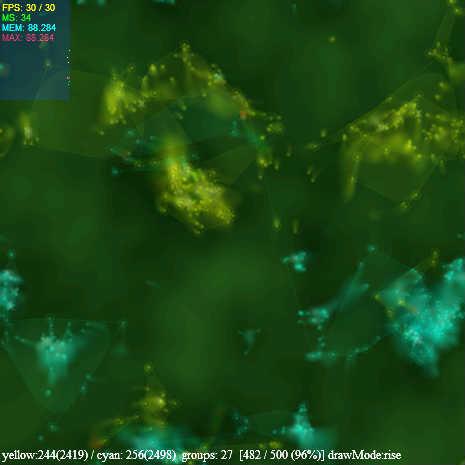// グループがまとまって動く仕組みと、グループ同士の衝突判定を入れたよ。