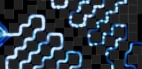 Layout Editor (for Dijkstra Particle Streams (Ver.1.1)) で作成した例です * http://wonderfl.net/code/425545196427ae8659973a8bfb13d54cfdeaf425 * ------------------------------------------------------------------ * [遊び方] * 右下の2つの出口をタイミングよく交互に開閉することで、 * パーティクルがゴールに辿り着くこと無く、長い迷路を永遠にさまよい続けるのです。 * ------------------------------------------------------------------ ------------------------------------------------------------------ * [更新内容] * ・パフォーマンスを犠牲して、パーティクルを奇麗にしてみた * ・パーティクルの軌跡を、滑らかに改善(+経路を塞ぐとフワフワ) * ・パーティクルが複数のゴール候補から最短のゴールに向かって進むようになった * ・微妙にコードの整理、微妙なバグを修正 * ------------------------------------------------------------------ * [いじりどころ] * 下の方にあるParameterクラスに簡単にいじれる値をまとめてあります。 * 是非、Forkしていろいろ試してみてください! * ------------------------------------------------------------------ * 後でレイアウトを編集するエディタを作る予定。 ------------------------------------------------------------------ * 最短経路を進むパーティクル * * [inspired by] * Desktop Tower Defense * http://www.handdrawngames.com/DesktopTD/ * Dijkstra Visualization * http://w