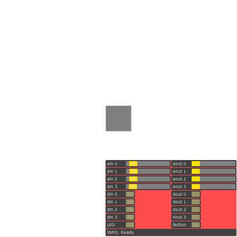 I/Oモジュール上のボタンを押す、離す、長押しすると画面上の 矩形が変化します。 基本的なセットアップについては以下のURLを参照してください http://funnel.cc/Main/GettingStarted