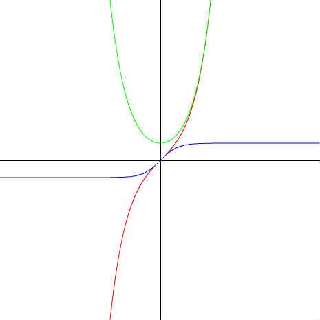 赤・・・sinh(x) 緑・・・cosh(x) 青・・・tanh(x)