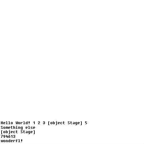 trace("Hello","World!",1,2,3,stage,5);