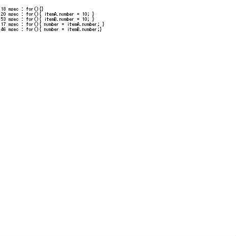 note.end(" msec : for(){ itemB.number = 10; }\n");