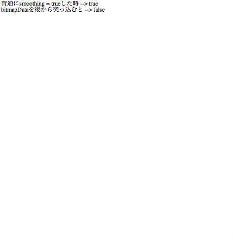tf.appendText("bitmapDataを後から突っ込むと --> " + bmp.smoothing + "\n");