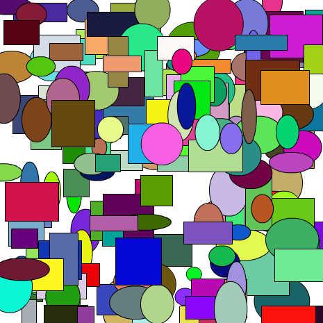 各100個の長方形と楕円をランダムに配置(塗りつぶし)