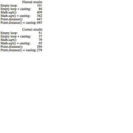 [Corrected]Distance with casting Math.sqrt(), Point.distance() methods