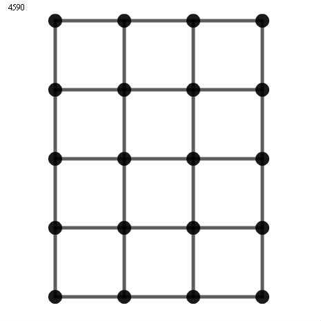 左上の点から右下の点までいくのに何通りの経路があるかを数えて、左上に表示します。