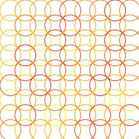 // 円を直径より短い間隔で並べる