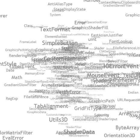 private var tagsString:String ="All Classes Accessibility AccessibilityProperties ActionScriptVersion ActivityEvent AntiAliasType ApplicationDomain ArgumentError arguments Array AsyncErrorEvent AVM1Movie BevelFilter Bitmap BitmapData BitmapDataChannel BitmapFilter BitmapFilterQuality BitmapFilterType BlendMode BlurFilter Boolean BreakOpportunity ByteArray Camera Capabilities CapsStyle CFFHinting Class Clipboard ClipboardFormats ClipboardTransferMode ColorCorrection ColorCorrectionSupport ColorMatrixFilter ColorTransform ContentElement ContextMenu ContextMenuBuiltInItems ContextMenuClipboardItems ContextMenuEvent ContextMenuItem ConvolutionFilter CSMSettings CustomActions DataEvent Date DefinitionError Dictionary DigitCase DigitWidth DisplacementMapFilter DisplacementMapFilterMode DisplayObject DisplayObjectContainer DropShadowFilter EastAsianJustifier ElementFormat Endian EOFError Error ErrorEvent EvalError Event EventDispatcher EventPhase ExternalInterface FileFilter FileReference FileReferenceList FocusEvent Font FontDescription FontLookup FontMetrics FontPosture FontStyle FontType FontWeight FrameLabel FullScreenEvent Function GlowFilter GradientBevelFilter GradientGlowFilter GradientType GraphicElement Graphics GraphicsBitmapFill GraphicsEndFill GraphicsGradientFill GraphicsPath GraphicsPathCommand GraphicsPathWinding GraphicsShaderFill GraphicsSolidFill GraphicsStroke GraphicsTrianglePath GridFitType GroupElement HTTPStatusEvent IBitmapDrawable ID3Info IDataInput IDataOutput IDrawCommand IDynamicPropertyOutput IDynamicPropertyWriter IEventDispatcher IExternalizable IGraphicsData IGraphicsFill IGraphicsPath IGraphicsStroke IllegalOperationError IME IMEConversionMode IMEEvent int InteractiveObject InterpolationMethod InvalidSWFError IOError IOErrorEvent JointStyle JPEGLoaderContext JustificationStyle Kerning Keyboard KeyboardEvent KeyLocation LigatureLevel LineJustification LineScaleMode Loader LoaderContext LoaderInfo LocalConnection Math Matrix Matrix3D MemoryError Microphone MorphShape Mouse MouseCursor MouseEvent MovieClip Namespace NetConnection NetStatusEvent NetStream NetStreamInfo NetStreamPlayOptions NetStreamPlayTransitions Number Object ObjectEncoding Orientation3D PerspectiveProjection PixelSnapping Point PrintJob PrintJobOptions PrintJobOrientation ProgressEvent Proxy QName RangeError Rectangle ReferenceError RegExp RenderingMode Responder SampleDataEvent Scene ScriptTimeoutError Security SecurityDomain SecurityError SecurityErrorEvent SecurityPanel Shader ShaderData ShaderEvent ShaderFilter ShaderInput ShaderJob ShaderParameter ShaderParameterType ShaderPrecision Shape SharedObject SharedObjectFlushStatus SimpleButton Socket Sound SoundChannel SoundCodec SoundLoaderContext SoundMixer SoundTransform SpaceJustifier SpreadMethod Sprite StackOverflowError Stage StageAlign StageDisplayState StageQuality StageScaleMode StaticText StatusEvent String StyleSheet SWFVersion SyncEvent SyntaxError System TabAlignment TabStop TextBaseline TextBlock TextColorType TextDisplayMode TextElement TextEvent TextField TextFieldAutoSize TextFieldType TextFormat TextFormatAlign TextJustifier TextLine TextLineCreationResult TextLineMetrics TextLineMirrorRegion TextLineValidity TextRenderer TextRotation TextSnapshot Timer TimerEvent Transform TriangleCulling TypeError TypographicCase uint URIError URLLoader URLLoaderDataFormat URLRequest URLRequestHeader URLRequestMethod URLStream URLVariables Utils3D Vector Vector3D VerifyError Video XML XMLDocument XMLList XMLNode XMLNodeType XMLSocket XMLUI";