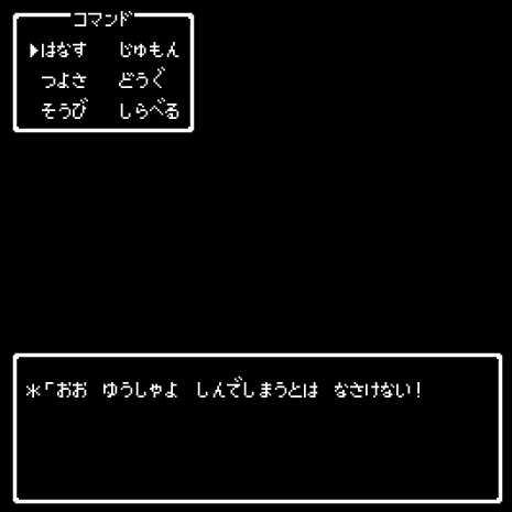 message.text = "*「おお ゆうしゃよ しんでしまうとは なさけない!";