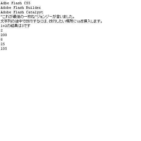 trace("Adbe Flash CS5\nAdobe Flash Builder\nAdobe Flash Catalyst");