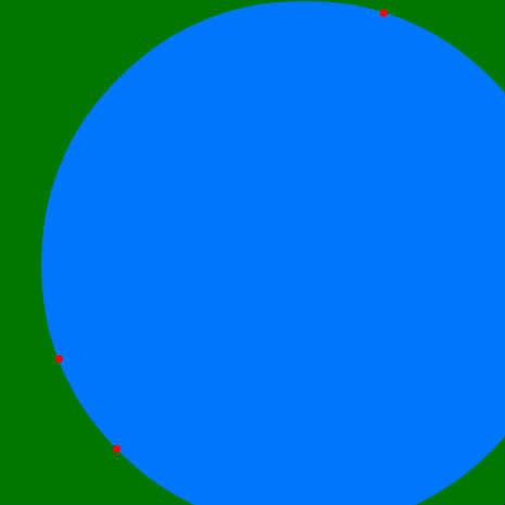 A circle through three points. @author makc @license WTFPLv2, http://sam.zoy.org/wtfpl/