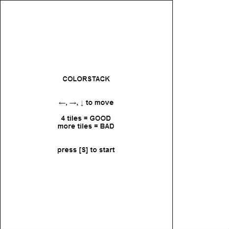 pt.text = "COLORSTACK\n\n\nā, ā, ā to move\n\n4 tiles = GOOD\nmore tiles = BAD\n\n\npress [S] to start";