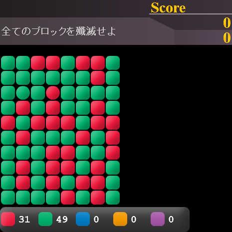 ステージの導入 * 立ち上がりに"+ 0"を出ないようにした * デザイン調整 * ゲームオーバーでも自動でやり直しが出来る(ぉ * * とりあえずはこれで完成ということで機能追加終了。 * あとはバグがあれば対応していくというぐらい。