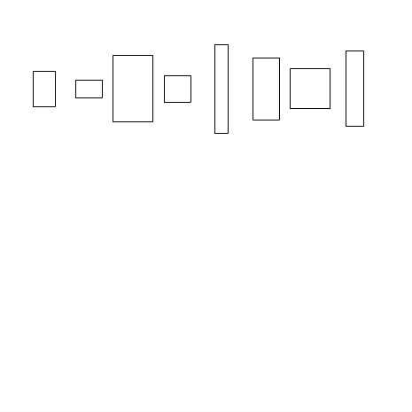 * 8個の縦横の大きさの異なる長方形を横一列に並べる