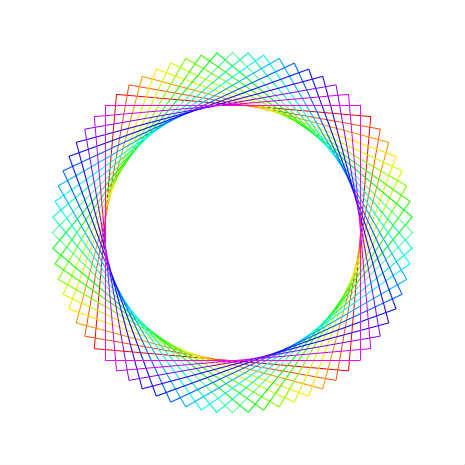 正方形の色を変化させて円を作るプログラミングを作りました。