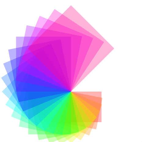 // forked from lenonsun's 正方形の大きさ,色,回転を連続して変化